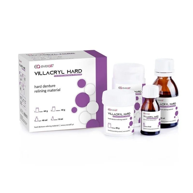 - Villacryl Hard Set - 1 készlet (1 x 60 g por + 1 x 40 ml folyadék + 1 x 10 ml demineralizáló + 1 x 40 g keményítő)