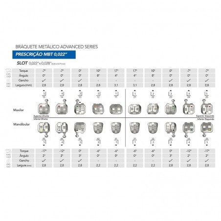 - Advanced Series MBT22 fém fogszabályozó kapcsok, kampókkal a szemfogakon és a premolárisokon - 1 készlet x 20 fogszabályozó