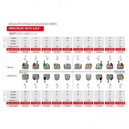 - Advanced Series Roth22 fém fogszabályozó kapcsok kampókkal a szemfogakon és a premolárisokon - 1 készlet x 20 fogszabályozó