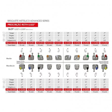 - Advanced Series Roth22 fém fogszabályozó kapcsok kampókkal a szemfogakon és a premoláris fogakon - 1 készlet x 200 fogszabályozó