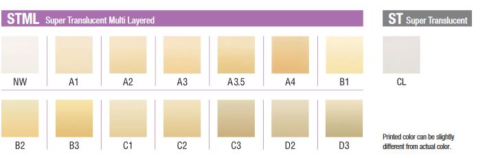 - 4 réteg fokozatosan változó színű cirkóniumból áll, ami természetes megjelenésű restaurációk készítését teszi lehetővé