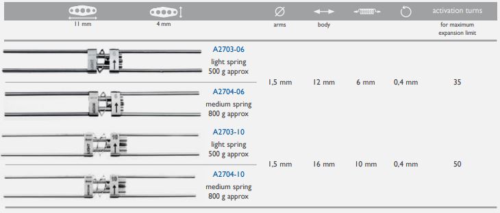 Palatális tágítócsavar rugókkal Memoria Leaf 10 mm 3 rugó 800 g Leone