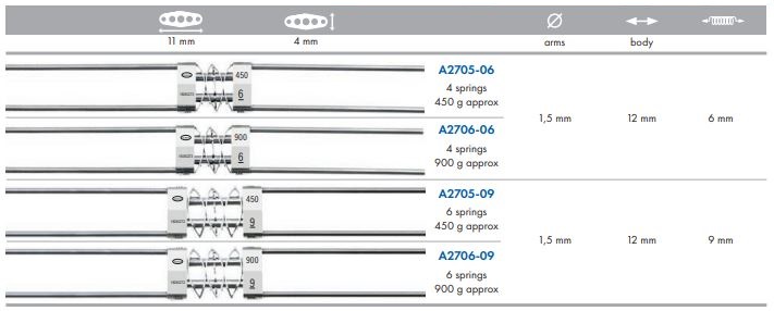 - A csomag tartalmaz egy speciális biztonsági kapcsot, amely a levélrugókat összenyomva tartja, megkönnyítve ezzel a technikus és az orvos munkáját a gyártás és a kezelés egyes szakaszaiban.