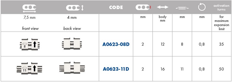 Palatinális diszjunkciós csavar önaktiváló Memoria Leaf rugókkal 9mm 6 rugó 900g LEONE