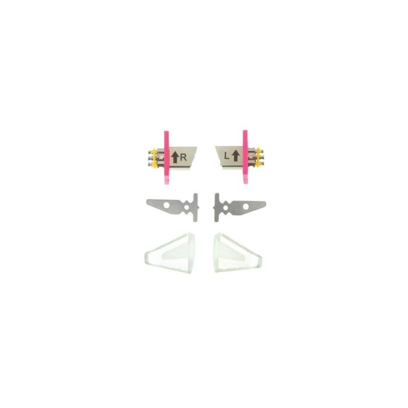 - A felső csavarok úgy lettek kialakítva, hogy nyomást gyakoroljanak a készülék alsó ferde síkjára: a kiálló elülső rész egy 70°-os szögben tökéletesen meghajlított fémtest, míg a hátsó rész biztosítja az akril kapacitását, csökkentve a törés kockázatát.