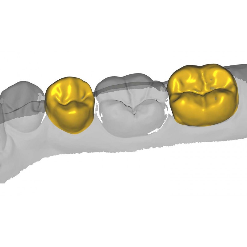 - Az ideiglenes fogpótlások a műtét előtti szkennelések alapján készíthetők – a korona/híd alakja lemásolható az eredeti anatómiai alakról (ha az eredeti fog még jó állapotban van), vagy fogkönyvtárak is felhasználhatók