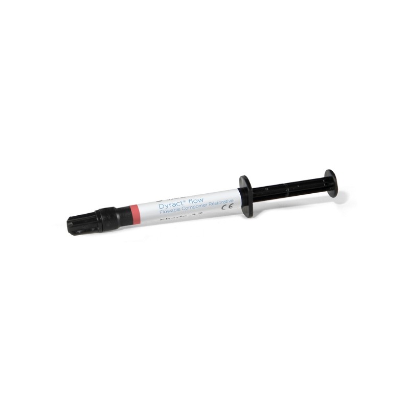 A Dyract flow egy kompomer anyag, amely folyékony tulajdonságai révén ideális kis üregek helyreállításához az elülső és hátsó területeken. A termék kézi eszközök használata nélkül illeszkedik az üreg falaihoz. Kis fecskendőkben kapható, közvetlen intraorális alkalmazásra.