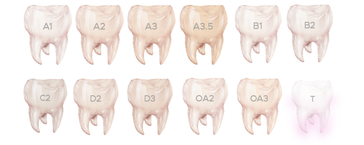 • Elérhető színek: A1, A2, A3, A3.5, AO2, AO3, B1, B2, C2, D2, D3, T