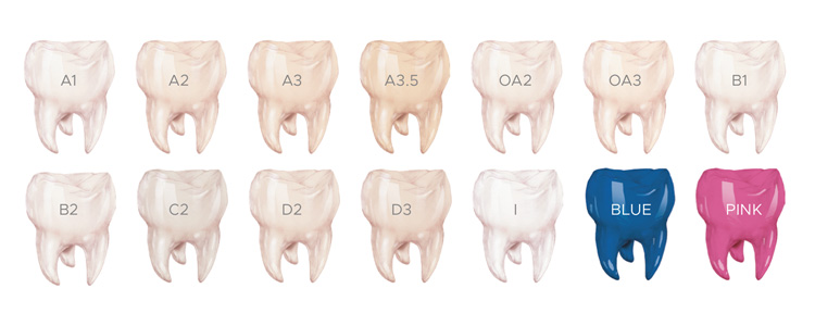 - Következő árnyalatok: Multishade, Blue, Pink, A1, A2, A3, A3.5, B1, B2, C2, D2, D3, OA2, OA3