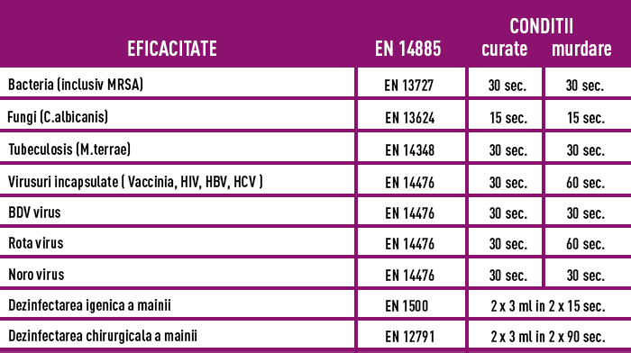 - Higiénikus kézfertőtlenítés (az EN1500 szerint): dörzsöljön 2 x 3 ml oldatot a kezei között 30 másodpercig (2 x 15 másodpercig)