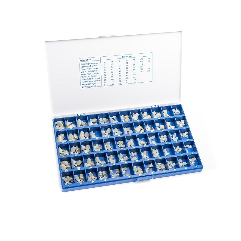 - Válogatott ideiglenes polikarbonát koronák - 1 doboz x 180 korona (különböző formák és méretek)