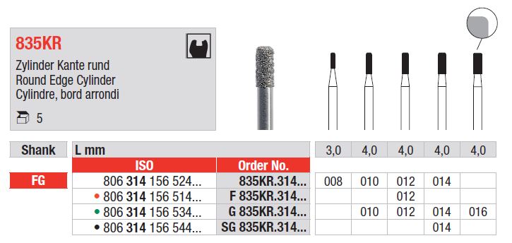 FG 835KR gyémánt hengeres fúró, lekerekített élekkel – Gyémánt eszközök a precíz előkészítéshez