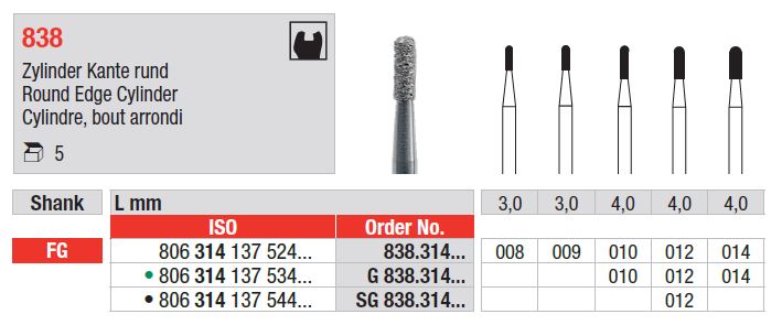 FG 838 Gyémánt hengeres fúró, lekerekített élekkel – Gyémánt eszközök a precíz előkészítéshez