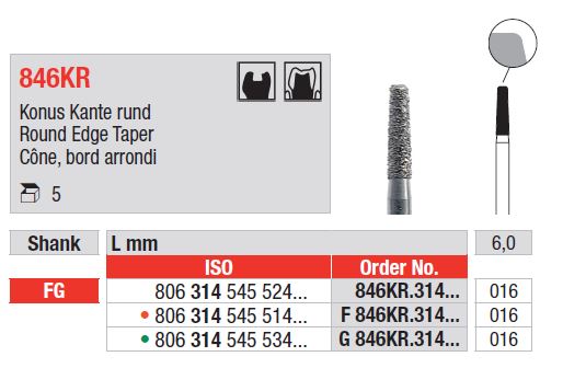 FG 846KR lekerekített élekkel rendelkező gyémánt kúpok – Gyémánt eszközök precíz előkészítéshez