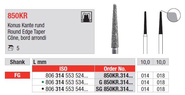 FG 850KR lekerekített élekkel rendelkező gyémánt kúpok – Gyémánt eszközök a precíz előkészítéshez