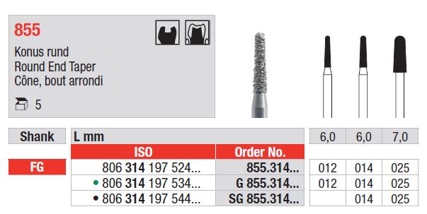 FG 855 lekerekített hegyű gyémántfúrók – Gyémánt eszközök a precíz előkészítéshez