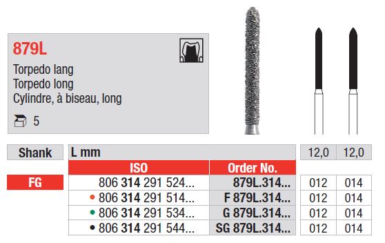 Hosszú kúpos hegyű gyémánt hengerfúró FG 879L – Gyémánt eszközök a precíz előkészítéshez
