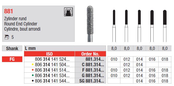 FG 881 Kerek hegyű gyémánt hengerfúró - Gyémánt eszközök a precíz előkészítéshez
