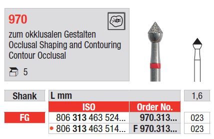 Gyémánt fúrók okkluzális formázáshoz és kontúrozáshoz FG 970