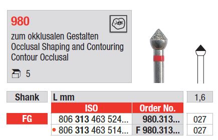 Gyémántfúrók okkluzális formázáshoz és kontúrozáshoz FG 980
