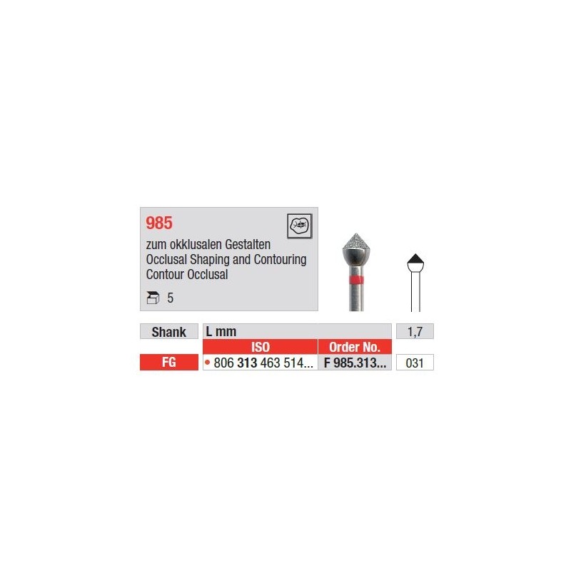 - Gyémántfúrók okkluzális formázáshoz és kontúrozáshoz FG F985 – 5 darab
