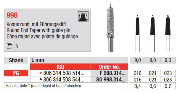 Gyémánt kúpos fúró, lekerekített hegygel és vezetőcsappal FG 998