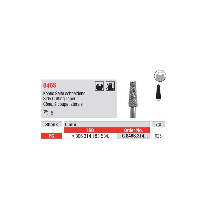 - Diamond Side Cutting Taper FG G846S fúrók – 5 darab