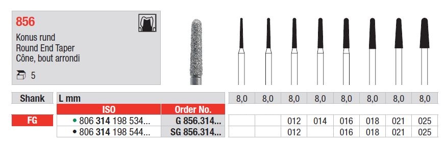 FG 856 lekerekített hegyű gyémántfúrók – Gyémánt eszközök precíz előkészítéshez