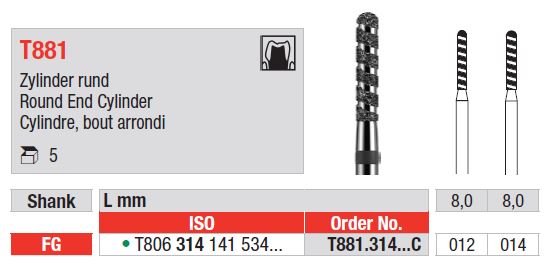 Gyémánt hengeres vágó, lekerekített hegygel FG T881