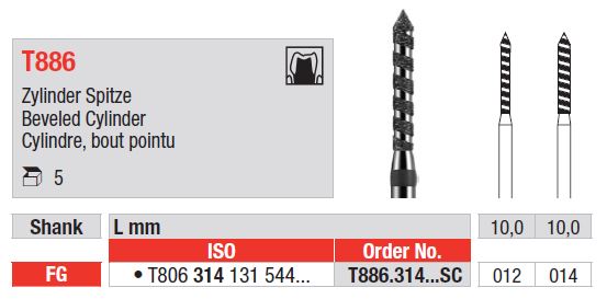 - Turbo gyémánt hengeres vágók éles hegygel FG T886 - 5 darab