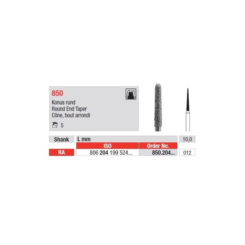 RA 850 gyémánt kúpos fúró, lekerekített hegygel – Gyémánt eszközök a precíz előkészítéshez