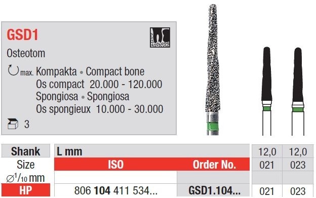 HP GSD1 csontvágó fúrók gyémántbevonattal csontvágáshoz, eltávolításhoz és precíz simításhoz, valamint foggyökerek felhasításához.