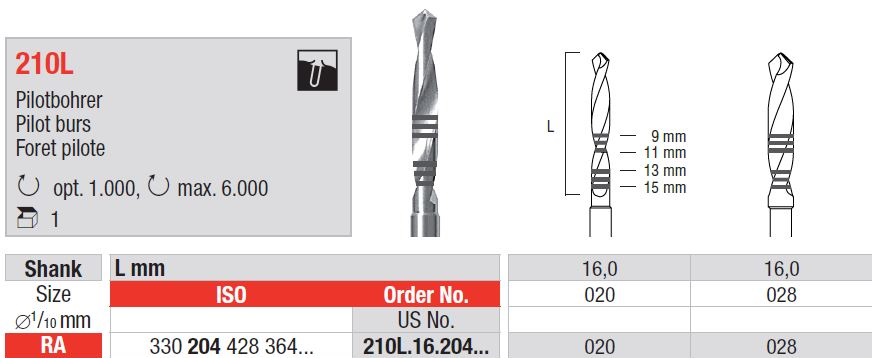 - RA 210L Pilot Burs sebészeti fúrók – 1 darab