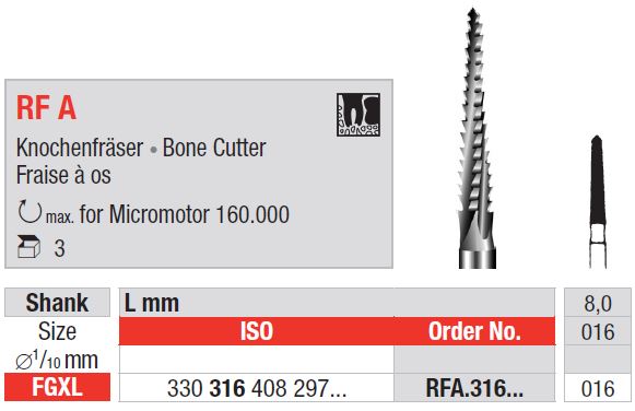 FGXL RF A 316 rozsdamentes acél sebészeti fúrók – precíziós rozsdamentes
