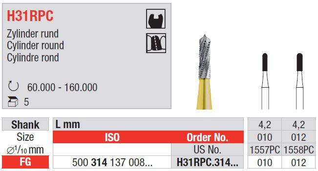 - TC Burs FG H31RPC PowerCut fúrók kerek hengeres fejjel – 5 darab