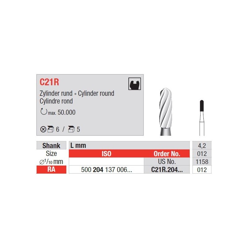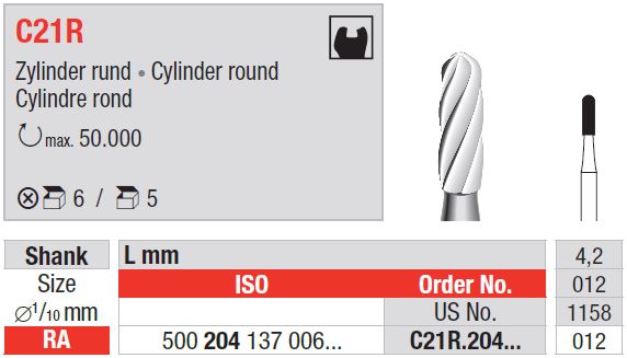 TC Burs RA C21R kerek hengeres fejű fúrók