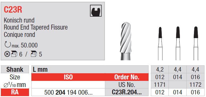 • TC Bur RA vágók kerek kúpos fejjel C23R - 5 darab