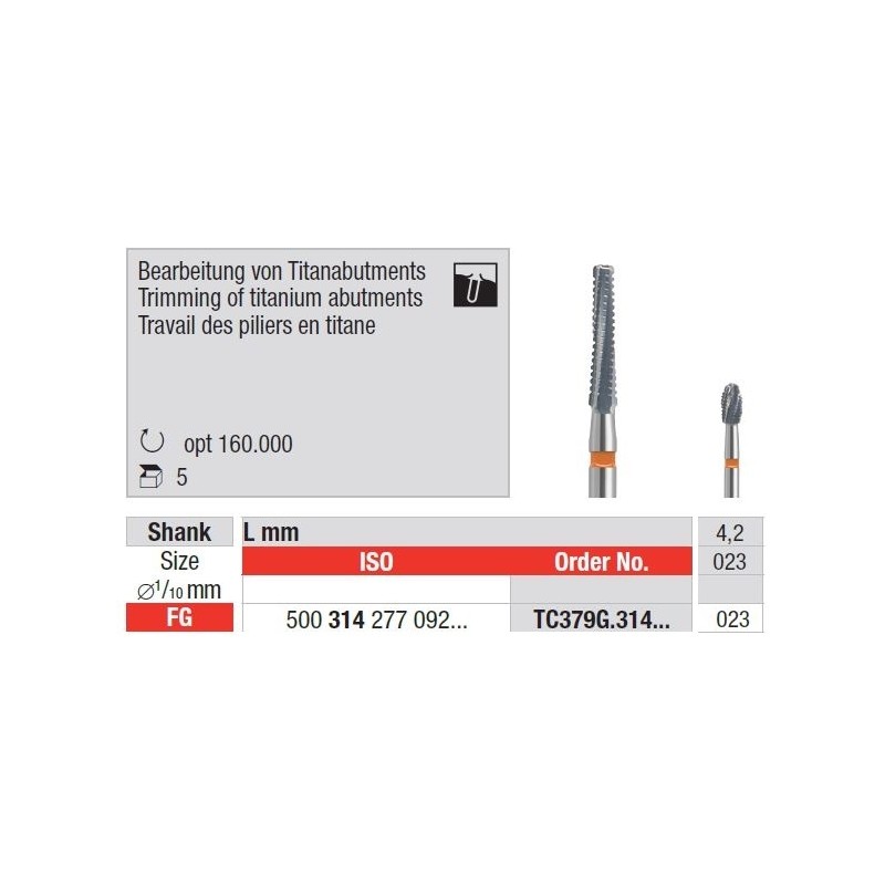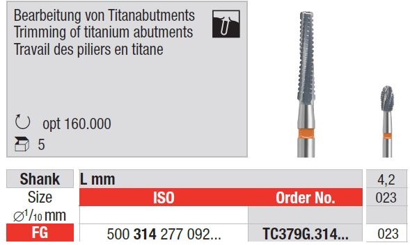 TC379G fúró titán abutmentek intraorális eltávolításához