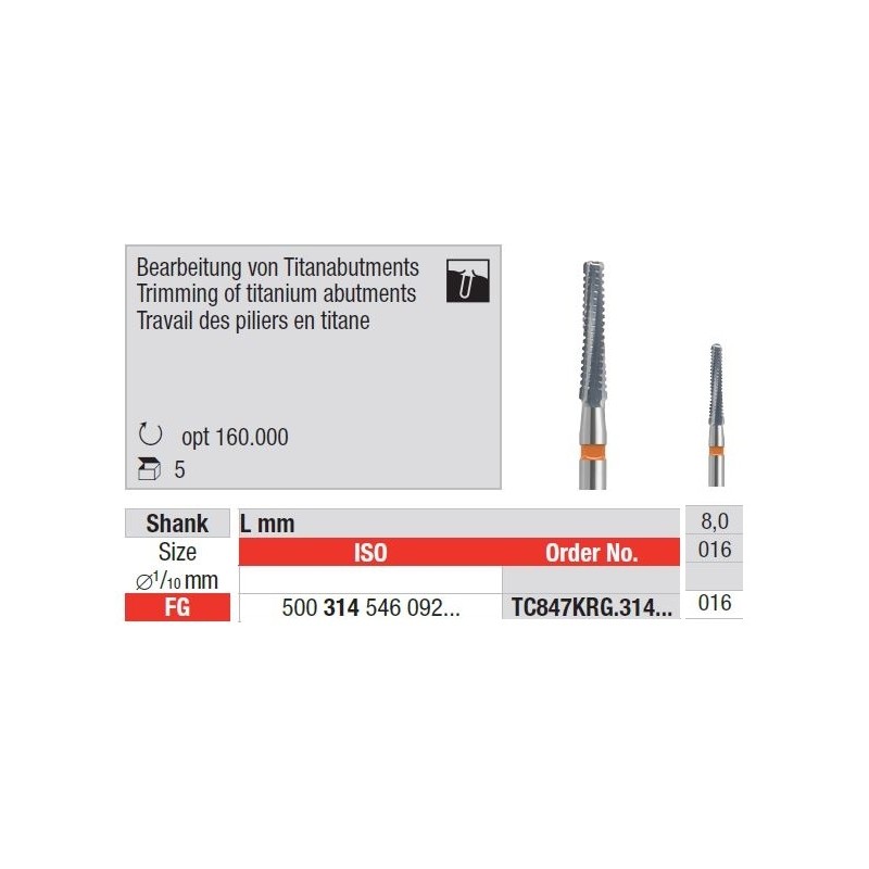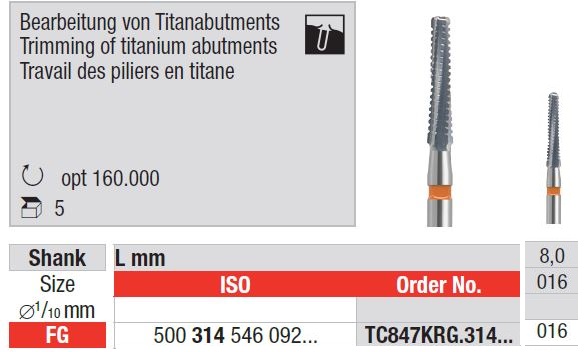 TC856KRG fúró a titán felépítmények intraorális eltávolításához