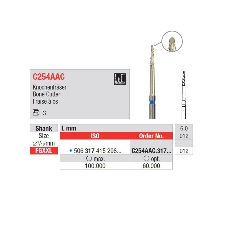- FGXXL volfrámkarbid sebészeti fúróEDEC254AAC.317.012- 1 darab