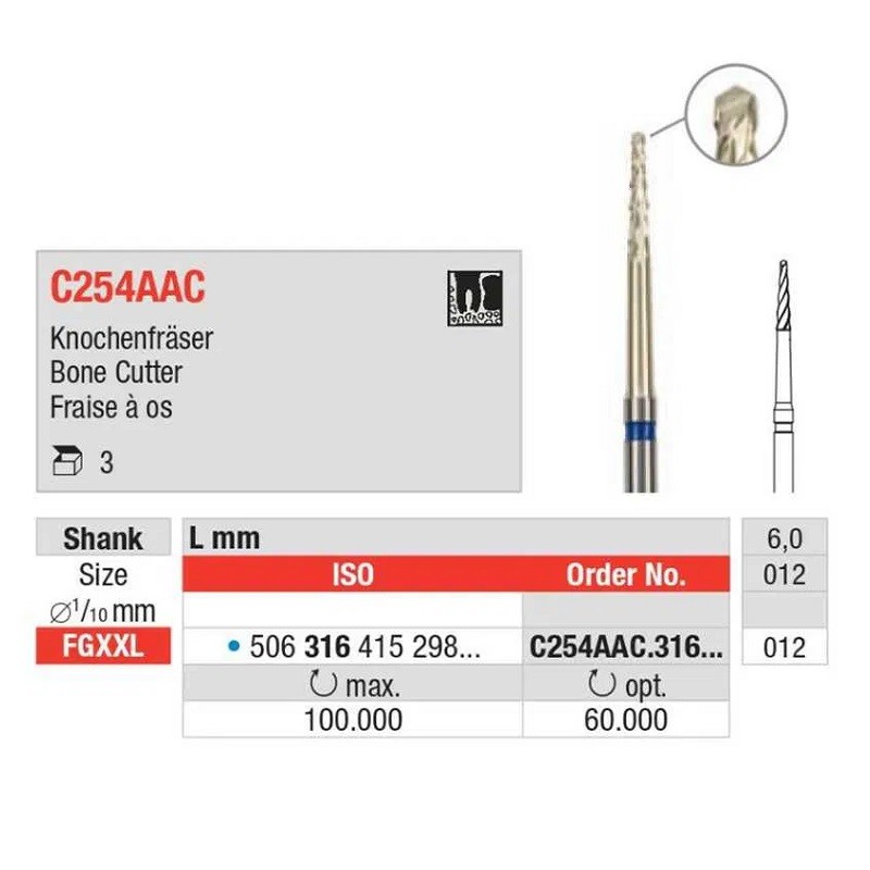 Edenta volfrámkarbid fúró csontvágáshoz FGXL C254AAC.316.012