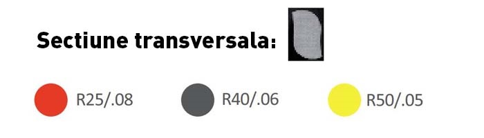 - Szín/kúposság: R25/.08 (piros), R40/.06 (fekete) és R50/.05 (sárga)
