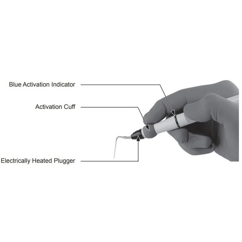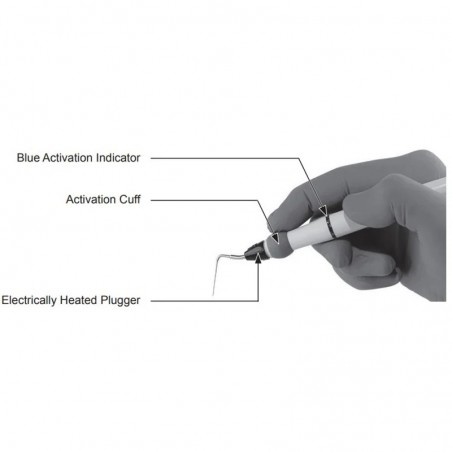 - Kettős töltési rendszer, amely lehetővé teszi a vertikális kondenzációt a fő kúp apikális harmadában, valamint a fűtött guttapercha befecskendezését a középső és koronális harmadokban