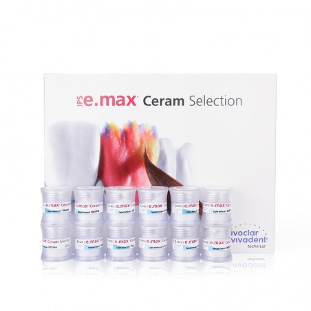 - IPS e.max Ceram Selection Kit - 6 x 5 g IPS e.max Ceram Special Enamel (színek: aqua, citrine, honey, apricot, quartz és diamond) + 3 x 5 g IPS e.max Ceram Reflector (színek: cream, salmon, silk) + 3 x 5 g IPS e.max Ceram Light Absorber (színek: fog, lavender, taupe)