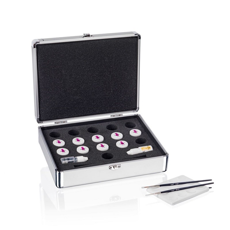 - Lustre Pastes NF V-Shades – A V-Shade a Lustre Pastes NF Body A – D alkalmazásával jön létre; a mindössze két percig tartó folyamat tartalmazza a Vita színek előállításához szükséges összes elemet.