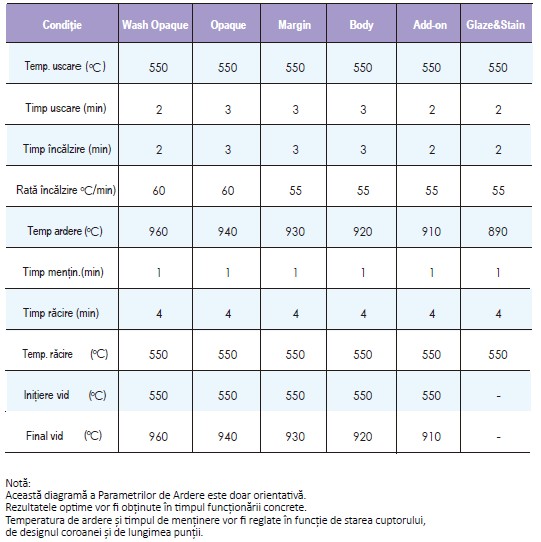 - Kerámia átmenet: 600 °C (± 20 °C)