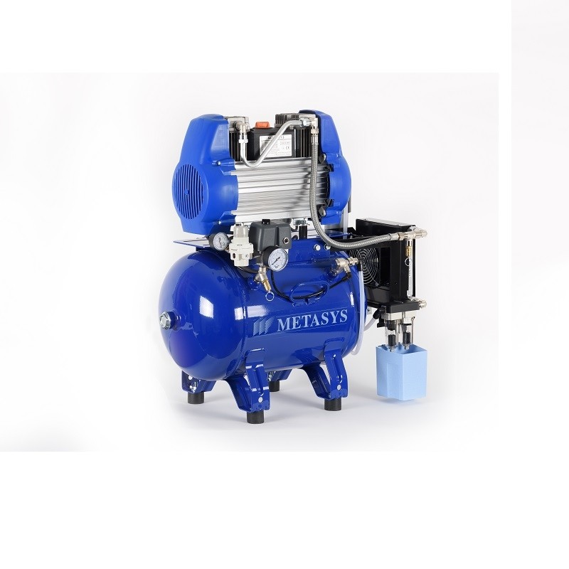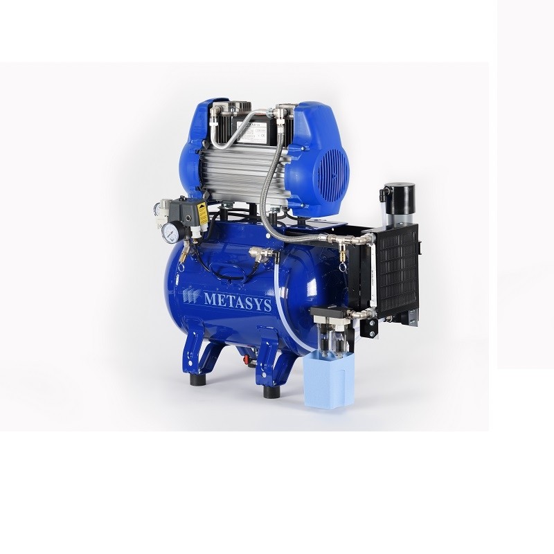A szuper csendes kompresszor, szárító nélkül. 1 munkahelyes olajmentes fogászati kompresszor 20 l-es tartállyal, melynek belső felülete antibakteriális bevonatú.