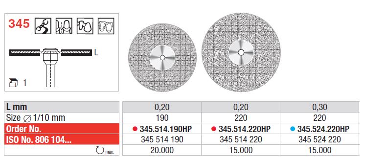 Kétféle szemcseméretű, finom és standard gyémántkorong kerámiák elválasztásához és kontúrozásához.