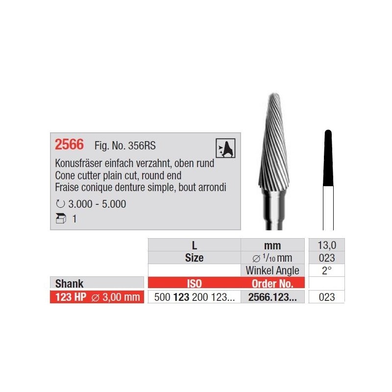 Freze Cone cutter plain cut round end 2566 123HP