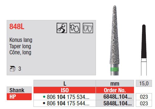Hosszúkás fejű gyémántfúrók HP 848L - Precíz előkészítéshez szolgáló forgó gyémántszerszámok